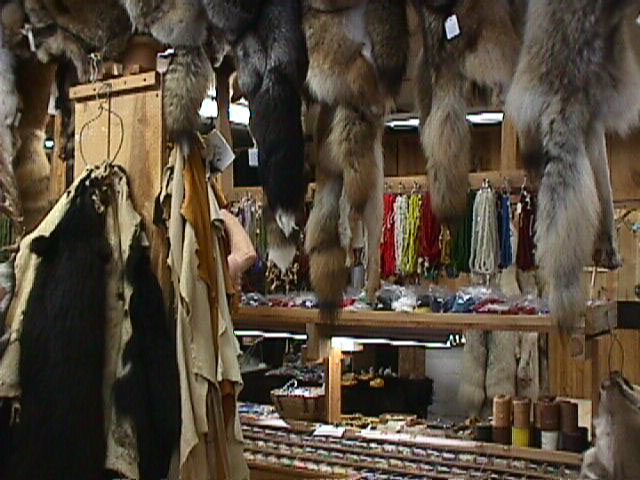 The sidewalk is lined with furs from buffalo to coyote. |